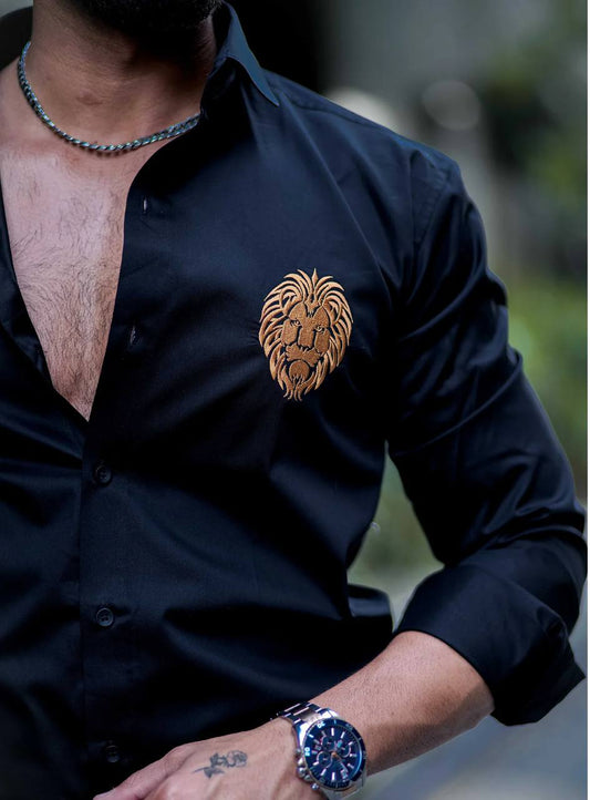Men’s Black Slim Fit Lion Embroidery Shirt