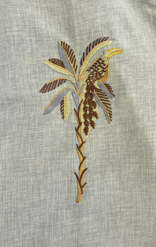 Sage Green Slim Fit Palm Embroidery Shirt