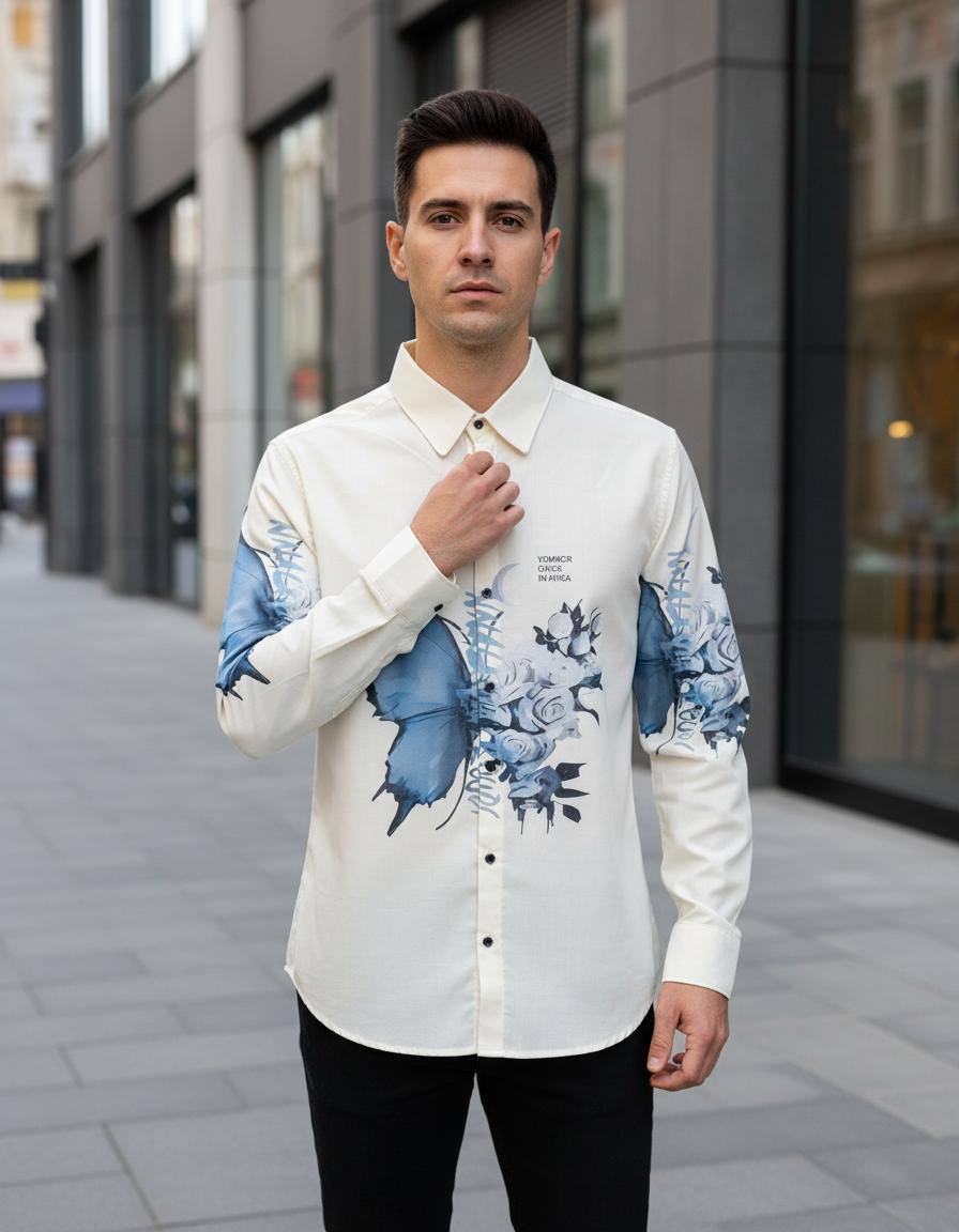ivory slim fit abstract floral print shirt